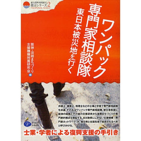 弁護士、建築士、税理士などの士業と学者で専門家相談隊を派遣。その名はワンパック専門家相談隊。被災者救援に阪神の経験とその後の災害研究から復興まちづくりの専門家的視点を提起する。まだ数県にしかない支援機構(専門家ネットワーク)が、被災県と全国各地で結成されるべきと呼びかける。士業・学者による復興支援の手引き。