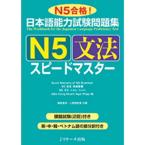 日本語能力試験N5の問題に出る可能性のある基本的な文法項目をすべてカバー、丁寧な解説と豊富な練習問題で確実に合格レベルの実力を養う。全体を、それぞれ2~3の項目を含む31のユニットで構成する。一つ一つの項目を丁寧に取り上げ、各ユニットでは、会話を中心としたわかりやすい例文(2~3例)と基本説明、前後の語句との接続パターン、ドリルという内容で展開していく。さらに5ユニットごとに実戦形式の練習問題、最後に仕上げとして模擬試験を2回行って、計88の項目を着実にマスターし、実戦力を高めていく。資料として12の活用表、また、英語・中国語・韓国語・ベトナム語の部分訳が付いて、一人でも安心して試験対策の学習ができる。