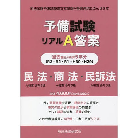 予備試験リアルA答案過去5年分民法・商法・民事訴訟法 司法試験予備試験論文本試験A答案再現&ぶんせき本