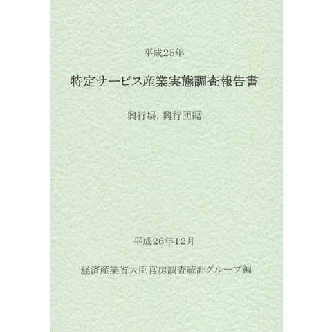 特定サービス産業実態調査報告書 興行場,興行団編平成25年/経済産業省大臣官房調査統計グループ