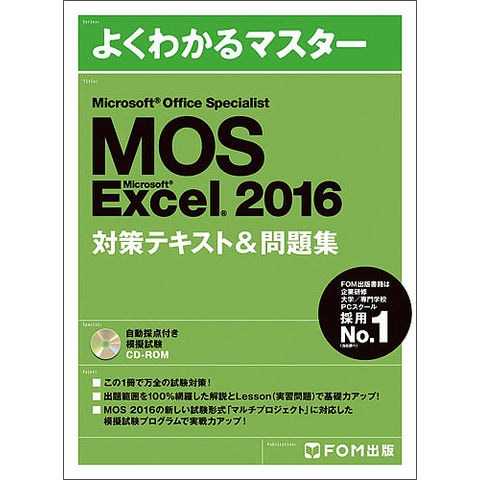 MOS Excel 2016試験の出題範囲を完全分析・網羅したテキストを提供します。 MOS試験の内容を1冊ですべてカバーでき、実戦力を養うことのできる万全のテキストです。 さらに、新しいMOS 2016の試験形式「マルチプロジェクト」に対応した模擬試験を収録しています。模擬試験を繰り返し解くことによって、着実に実力を身に付け、MOS試験合格を目指すことができます。