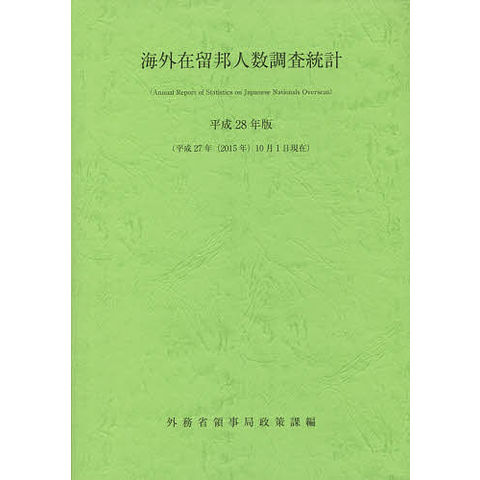 海外在留邦人数調査統計 平成28年版/外務省領事局政策課