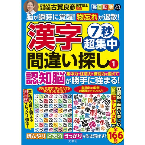 大人気の毎日脳活シリーズに全く新しい漢字パズル「漢字間違い探し」が登場!漢字間違い探しは同じ漢字がたくさん並ぶなかに1字だけ隠れている似たつくりの異なる漢字をできるだけ早く探すパズルです。