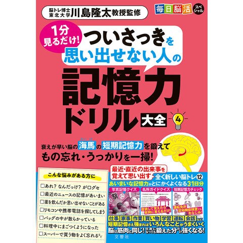 忘れがちな「ついさっきの出来事」を脳に記憶し再び思い出す力を徹底強化!衰えが早い脳の「海馬」の「短期記憶力」を鍛えて、もの忘れ・うっかりを一掃!