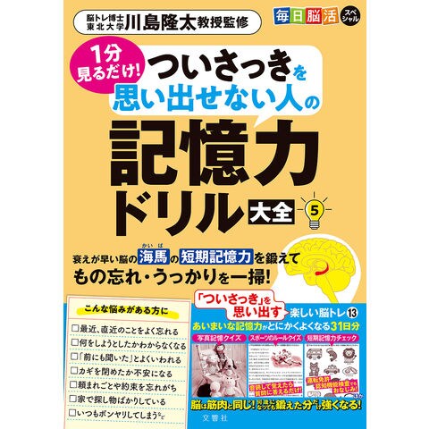 忘れがちな「ついさっきの出来事」を脳に記憶し再び思い出す力を徹底強化!衰えが早い脳の「海馬」の「短期記憶力」を鍛えて、もの忘れ・うっかりを一掃!