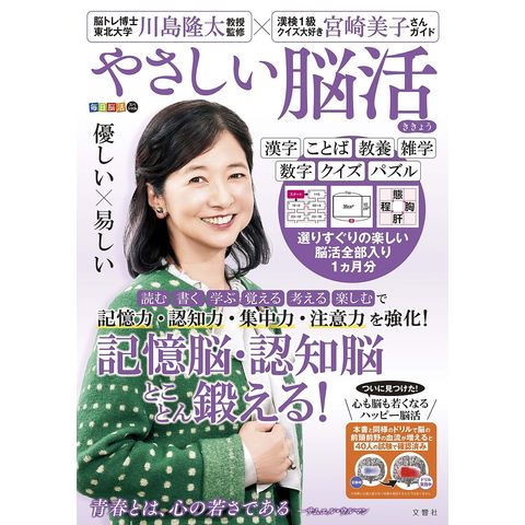 脳トレ博士・川島隆太先生が脳活性化の効果を実証した脳ドリル1ヵ月31日分とクイズ大好き女優・宮崎美子さんが出題したトリビアクイズで国語・算数・理科・社会・教養・雑学など全ジャンルを楽しみながら認知症を予防!シリーズ第2弾の本誌は記憶力を強化する問題を多数収録。