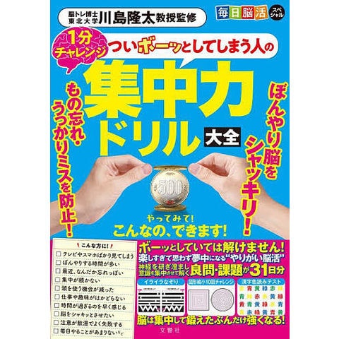 ボーッとしていては解けません!刺激が少ない毎日が楽しくなる生きがい脳活。衰えがちな脳の「前頭前野」を鍛え集中力を強化!日ごろの「ぼんやり」「もの忘れ」「うっかり」を防止します!