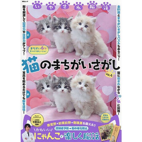 今号もかわいいニャンコが大集合してくれています。愛くるしいにゃんこに癒され、まちがい探しを楽しめて、脳活もできる、一冊三役の脳トレパズル!