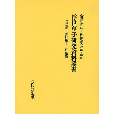 浮世草子研究資料叢書 第2巻/倉員正江/・解説佐伯孝弘