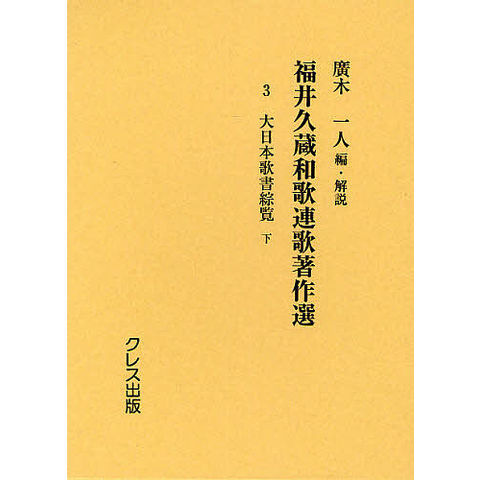 福井久蔵和歌連歌著作選 3 復刻版/福井久蔵/廣木一人