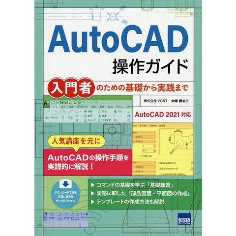 AutoCAD2021対応。人気講座を元にAutoCADの操作手順を実践的に解説!コマンドの基礎を学ぶ「基礎練習」、実務に即した「部品図面・平面図の作成」、テンプレートの作成方法も解説。