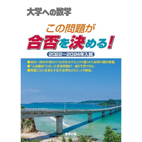 月刊『大学への数学」の増刊号として毎年発行している「合否を分けたこの1題」は、大学別に、その年の入試問題で“合否を分けた“と思われる1題を集めた本です。合格のためにクリアしなければならない学力レベルを明確にし、今後の学習の方針を立てる際に役立つように編集しました。
