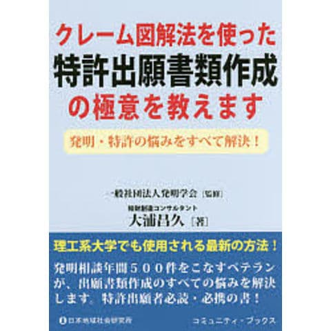 理工系大学でも使用される最新の方法!発明相談年間500件をこなすベテランが、出願書類作成のすべての悩みを解決します。特許出願者必読・必携の書!