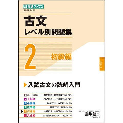 東進のレベル別問題集に、新たに「古文」((1)~(6))が登場!『富井の古典文法をはじめからていねいに』『古文単語FOMULA600』等で著名な富井健二先生が贈る本格的新スタンダード問題集!問題文(古文)をすべて「品詞分解」し、「4色フルカラー」でわかりやすく色分け。現代語訳は赤シートで隠しながら学習でき、覚えるべき単語・文法もあまさず脚注にて解説!