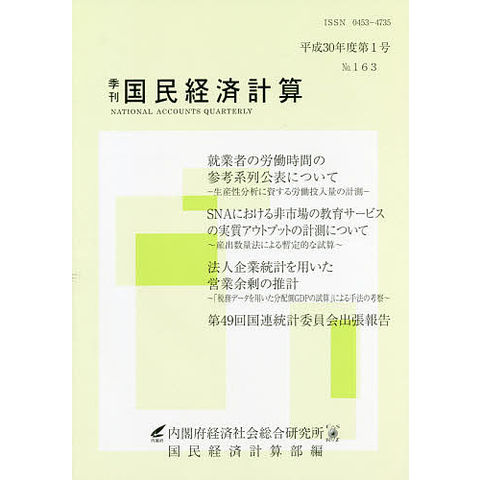 季刊国民経済計算 No.163(平成30年度第1号)/内閣府経済社会総合研究所国民経済計算部