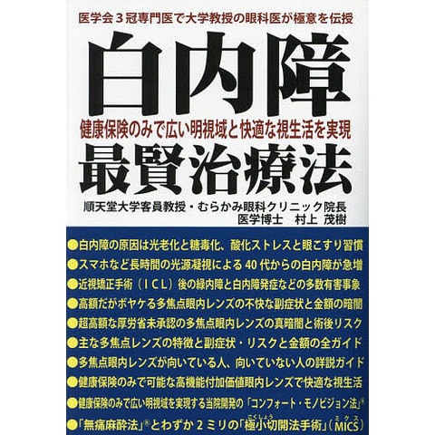 白内障健康保険のみで広い明視域と快適な視生活を実現最賢治療法 医学会3冠専門医で大学教授の眼科医が極意を伝授/村上茂樹