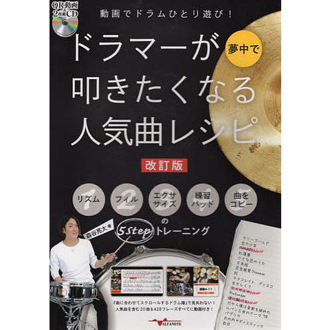 スマホ・タブレットなどで見る『曲に合わせてスクロールするドラム譜』で見失わない!人気曲を含む20曲&428フレーズすべてに動画付き!曲を叩くための1.基礎リズムパターン→2.基礎フィルイン→3.エクササイズ→4.練習パッドフレーズ→5.目的の曲を叩くという5STEPトレーニングで楽しみながら上達できます。【収録曲】