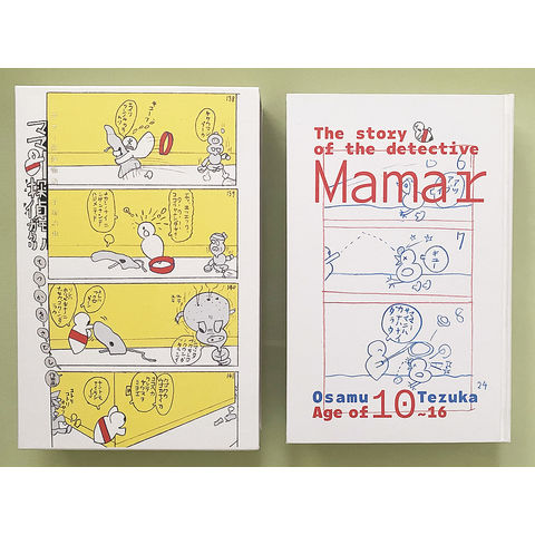 手塚治虫が10歳から16歳にかけて描いた『ママー探偵物語』を中心に編んだ幻の秘蔵作品集です。これまでムックや展覧会でその一部が発表・展示されることはありましたが、その作品の全貌は不明のままだった、謎の生物「ママー」が登場する物語をまとめたものです。