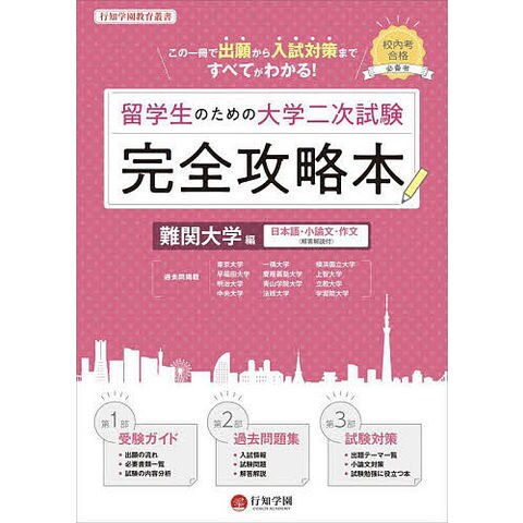 大学入学を目指す留学生にとってハードルとなっていた、二次試験の情報を集め、手続きを行い、過去問を集め、対策の勉強をすること等を本書1冊で実現することができます。