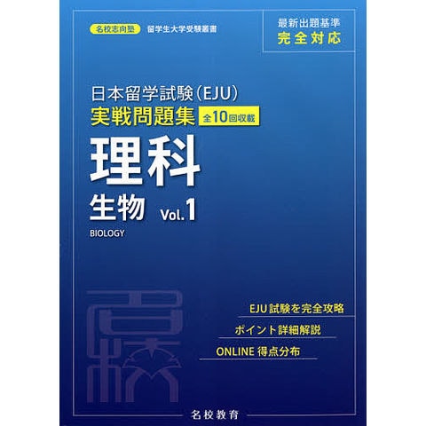 日本留学試験(EJU)の実戦問題集10回分、理科 生物 Vol.1。