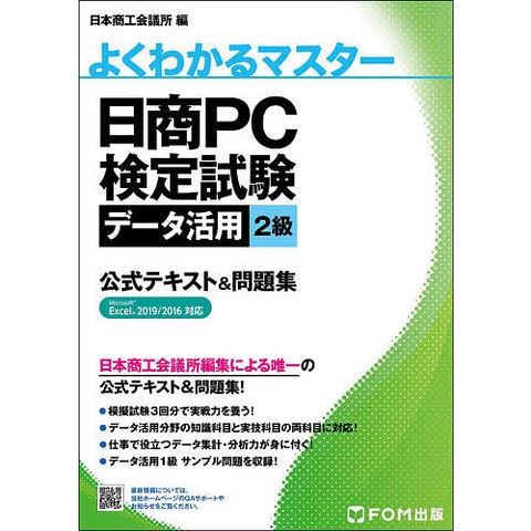 本書は、日商PC検定試験の「データ活用 2級」の合格を目指す方を対象に、Office 2019またはOffice 2016を使って学習するための試験対策用の教材です。