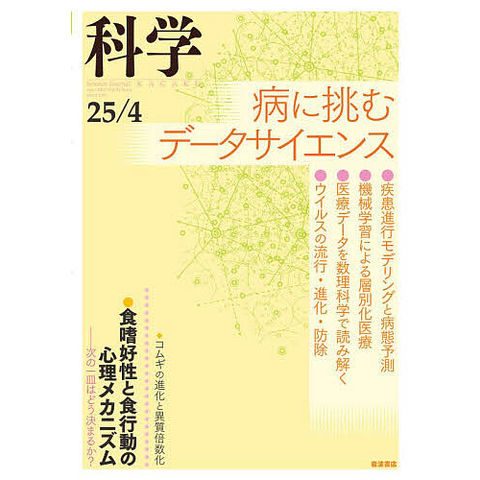 【特集】病に挑むデータサイエンスデータサイエンスの快進撃……岩見真吾臨床データを用いたがん研究……波江野洋COVID-19患者における唾液中のウイルス排出量……朴炯基数理とデータでひもとくウイルスの流行、進化、防除……佐々木顕コロナ禍での抑うつを地形図として解釈する……立松大機脳画像の機械学習と精神疾患……小池進介糖尿病の層別化と進行過程モデリング……川上英良電子カルテからの患者状態推定……小島諒介データ駆動型数理モデルによる神経変性疾患研究……矢田祐一郎・本田直樹数理科学が解き明かす心疾患――現代の 「ダ・ビンチの目」……坂上貴之病態進行を個人レベルで捉える――急性肝障害・急性肝不全の予後予測モデル……吉村雷輝「巻頭エッセイ」日本はデータサイエンス先進国を目指せ……今井耕介食嗜好性と食行動の心理メカニズム――次の一皿はどう決まるか?……喜田聡「連載」夜の教室からリュウグウへ――定時制高校科学部の挑戦2 〈座談会〉科学するこころ……伊与原新・橘 省吾・久好圭治・谷口真基・江菅純一言語研究者、ユーラシアを彷徨う9 サバティカルで、ヨーロッパを彷徨う――フィンランド語・ハンガリー語……風間伸次郎3.11以後の科学リテラシー117……牧野淳一郎日常身辺の確率的諸問題14(最終回)そして結局、確率とはなにか?……原啓介「科学通信」コムギの進化――異質倍数化がパスタ用・パン用小麦粉の違いをもたらした……江副晃洋次号予告表紙デザイン=佐藤篤司