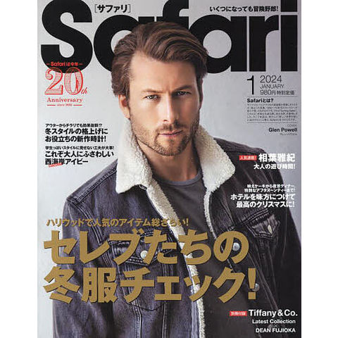 セレブたちの冬服チェック!COVER グレン・パウエルハリウッドで人気のアイテム総ざらい!セレブたちの冬服チェック!冬ファッションどうする? 着こなしヒントはセレブにあり!今、多くのセレブが愛用しているシャツジャケットの選びと上手なこなし方!これでヴィンテージっぽいニュアンス出し!?茶使いキング、ニック・ジョナスのテク!学生っぽいスタイルに見せない工夫が大事!これぞ大人にふさわしい西海岸アイビーアウターからチラリでも効果抜群!?冬スタイルの格上げにお役立ちの新作時計!映えケーキから夜景ディナー、特別なアフタヌーンティーまで!ホテルを味方につけて最高のクリスマスに!『Safari』創刊20周年企画Safari×GR SUPRA×TOM S 特別なGRスープラ発売!the SHINING STAR of this month!vol.85 Glen Powellグレン・パウエル相葉雅紀大人の遊び時間! vol.20大人の男に必要な超・王道アイテム!vol.41 ダウンベストアスリートとファッションサッカー選手 脇坂泰斗美女アスリートとデニムビーチバレーボール選手 衣笠乃愛アスリートの分岐点野球選手 源田壮亮別冊付録Tiffany & Co.Latest Collection×DEAN FUJIOKAほか