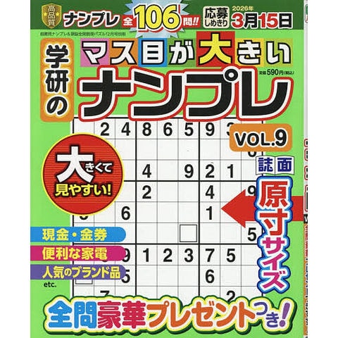 学研のマス目が大きいナンプレ Vol.9 2025年12月号 【超難問ナンプレ&頭脳全開数理パズル別冊】