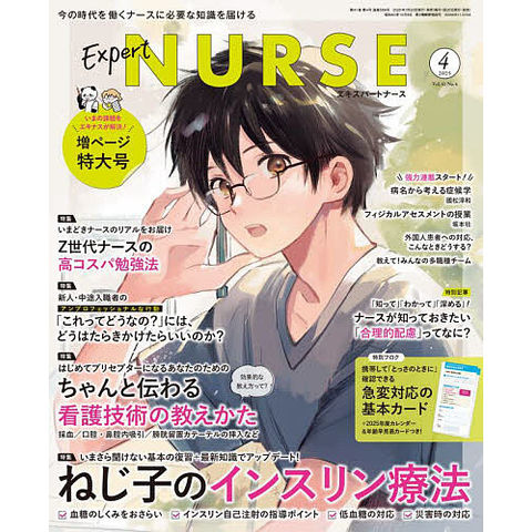 ねじ子のインスリン療法 執筆 森皆ねじ子 インスリン自己注射の基本の復習 インスリン自己注射の方法 さまざまなインスリンの種類 低血糖のときの対応 災害時のインスリンはじめてプリセプターになるあなたのための ちゃんと伝わる看護技術の教えかた 「PART1」執筆 松本千明 「PART2」監修 三浦まき「PART1」グレートプリセプターのちゃんと伝わる教えかた「PART2」グレートプリセプターの看護技術の教えかた 1 採血 2 口腔・鼻腔内吸引 3 膀胱留置カテーテルの挿入 4 輸液新人・中途入職者の「これってどうなんだろう?」(アンプロフェッショナルな行動)には、どうはたらきかけたらいいのか? 執筆 宮田靖志 「PART1」そもそも「プロフェッショナリズム」ってなに? 「PART2」「アンプロ行動」と決めつける前に考えるべきこと 「PART3」プロフェッショナリズムの維持に向けて必要なことと課題は?Z世代ナースの高コスパ勉強法 編集 エキスパートナース編集室 「PART1」Z世代ナースのリアル勉強法 「PART2」先輩ナースのおすすめ勉強法 「知って」「わかって」「深める」! ナースが知っておきたい「合理的配慮」ってなに? 執筆 喜多一馬 編集協力 白石弓夏病名から考える症候学 執筆 國松淳和 ・急性腎盂腎炎フィジカルアセスメントの授業 執筆 坂本 壮 ・フィジカルアセスメントの原則外国人患者への対応、こんなときどうする? 監修 国立国際医療センター 国際診療部・看護部 執筆 小山内泰代 ・外国人患者に対してナースができること(前編)教えて! みんなの多職種チーム RST/横浜市立みなと赤十字病院“複雑な背景”を抱える患者さんを支援するために、私たちが考えたいこと 執筆 品田雄市 ・在宅で身元の引き取りに課題のある患者さんへの支援アプデしたい! 医療の最新情報 執筆 卯野木 健 ・『重症患者リハビリテーション 診療ガイドライン2023』作成の経緯と、ナースが知っておきたい概要働くナースのための精神医学 執筆 西井重超 ・うつ病のなかに隠された起立性調節障害考えるナース 執筆 岩田健太郎…他