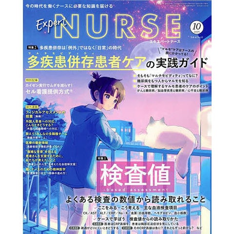 よくある検査値の数値から読み取れること検査値-based assessment執筆 國松淳和はじめにここをみる・こう考える 主な血液検査項目(1)CK (2)AST・ALT (3)CRP (4)Na、K (5)血算ケースで学ぼう 検査値からの読み取りかたCASE. 01 医者はCRP高値を、患者は胸部圧迫症状を気にしているCASE. 02 「急性腸炎」のわりに、CRPは正常?CASE. 03 疎通がとりにくいときどうする(1)CASE. 04 採血結果で診断までわかるCASE. 05 疎通がとりにくいときどうする(2)CASE. 06 そのCRP高値は急に? それともずっと前から?おわりに“マルモ”ケアはナースの腕にかかってる!多疾患併存(マルチモビディティ)患者ケアの実践ガイド執筆 山崎優介PART1 そもそも「マルチモビディティ」ってなに?PART2 糖尿病をもつ人からマルチモビディティを知るPART3 糖尿病をもつ人から考えるマルモ患者のケアのポイント●がんと糖尿病 ●脳血管疾患と糖尿病●心不全と糖尿病フィジカルアセスメントの授業胸痛執筆 坂本 壮外国人患者への対応、こんなときどうする?外国人妊産褥婦への対応監修 国立国際医療センター 国際診療部・看護部執筆 脇 梨紗乃教えて! みんなの多職種チーム褥瘡対策チーム執筆 藤沢市民病院“複雑な背景”を抱える患者さんを支援するために、私たちが考えたいこと“患者さんの人生”を考えた社会復帰支援執筆 品田雄市アプデしたい! 医療の最新情報いま見直しておきたい、『高齢者総合機能評価(CGA)』。看護師の業務にはどう関連するの?執筆 竹屋 泰、糀屋絵理子働くナースのための精神医学発達障害に役立つ物事の進め方執筆 西井重超業務の「大変さ」を「やりがい」に変えるカイゼン実行でムダを減らす!セル看護提供方式R執筆 倉智恵美子、加治屋晶子、田中百合子、福村陽子