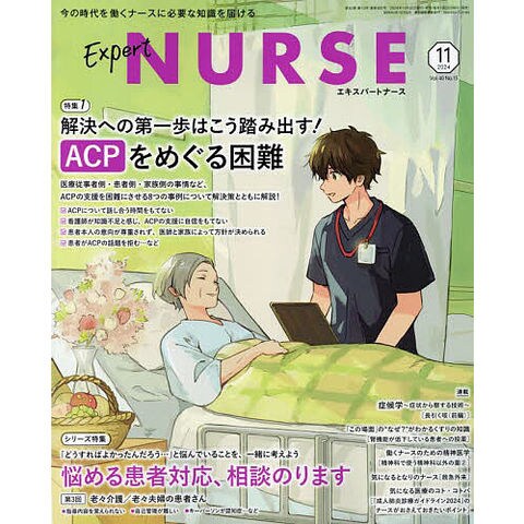 〈特集〉解決への第一歩はこう踏み出す!ACPをめぐる困難小さな目標で「やってみよう」の第一歩を始めよう!1. ACPに関する追加業務が「ケアの質を低下させる」と、管理者が懸念を示している2. 看護師の患者と向き合う時間が限られているため、ACPについて十分に話し合うことが困難である3. ACPの支援に関する知識やスキルを習得する機会が十分に提供されないため、看護師が患者のACP支援に自信をもてない4. 認知症や精神症状(せん妄など)によって、患者が自身の意思を明確に表示できないため、ACPが難しい5. 重篤な状態で緊急搬送された患者やその家族に、ACPの話し合いをすることはきわめて困難である6. 家族がACPの重要性を理解せず、話し合いに参画してくれない7. 医療従事者がACPの話題をもちかけても、患者が「話したくない」と断る8. 患者本人の意向を尊重することなく医師と家族の相談で将来の医療・ケアの方針が決定され、看護師は倫理的なジレンマを抱えている〈特集〉「どうすればよかったんだろう… 」と悩んでいることを、一緒に考えよう 悩める患者対応、相談のります第3回 老々介護/老々夫婦の患者さん 編PART1 今の“超高齢社会”と起きていることを知ろうPART2 実際に出合う“困った場面”には、どう対処する?〈連載〉症候学―症状から察する技術―長引く咳(前編)事例で解説!「この場面」の“なぜ?”がわかるくすりの知識 腎機能が低下している患者への投薬気になるとなりのナース 救急外来気になる医療のコト・コトバ 成人肺炎診療ガイドラインが改訂!ナースがおさえておきたいポイントはどこ?働くナースのための精神医学 精神科で使う精神科以外の薬 その2考えるナース