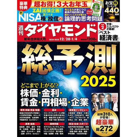 特集総予測2025どこまで上がる!?株価・金利・賃金・円相場・企業2025年カレンダー池井戸 潤×岡本行生×大塚博行 連載小説『ブティック』特別鼎談株価・景気・投資戦後80年の日本経済 伊藤元重戦後80年 激変! ニッポン人の暮らし景気アンケート日本株アンケート為替アンケート金利アンケート金融政策鼎談 加藤 出×白井さゆり×片岡剛士米国経済(1) 峰尾洋一米国経済(2) Interview ローレンス・サマーズ世界経済 Interview ポール・クルーグマン米国株 岡元兵八郎×柴田光浩投資 Interview ジム・ロジャーズ新興国経済 西〓 徹(にしはま・とおる)物価 渡辺 努中国経済 齋藤尚登欧州経済 田中 理商品 新村直弘高金利通貨 山岡和雅ガバナンス改革 Interview 新発田龍史雇用・賃金 山田 久戦後の社会保障不動産インサイダー座談会不動産市況 吉野 薫仮想通貨 村田雅志おとし玉3大特典(1) お宝株 440銘柄国際国際情勢マップ人類の危機 Interview ジャック・アタリ米国政治(1) 佐橋 亮米国政治(2) Interview ロジャー・ポーター日米安保 Interview リチャード・サミュエルズ米国政治(3) Interview マイケル・サンデル中国政治 Interview 興梠一郎欧州政治 広瀬佳一トランプ・リスク Interview イアン・ブレマーロシア・ウクライナ戦争 兵頭慎治中東情勢 錦田愛子北朝鮮の海外派兵 宮本 悟おとし玉3大特典(3) ZAi出張企画! 2025年新NISAで買うべき株&投信20産業・金融トップ経営者に問う24業種の天気予報銀行三菱UFJFG Interview 亀澤宏規三井住友FG Interview 中島 達みずほ銀行 Interview 加藤勝彦証券野村HD Interview 奥田健太郎生命保険明治安田生命保険 Interview 永島英器損害保険東京海上日動火災保険 Interview 城田宏明ガバナンス日本取引所グループ Interview 山道裕己アクティビスト…他