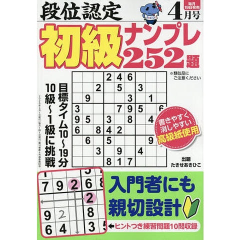 段位認定初級ナンプレ252題 2026年4月号