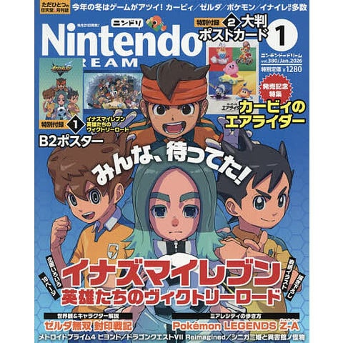 【特別付録】・カービィのエアライダー 大判ポストカード・イナズマイレブン 英雄たちのヴィクトリーロード B2ポスター【特集】・ついに出た!ライダー満喫ガイド カービィのエアライダー・レベルファイブ日野社長が目指した 「みんなが遊びたい『イナズマイレブン』を」 イナズマイレブン 英雄たちのヴィクトリーロード・ハイラルの歴史をいざ、体感! ゼルダ無双 封印戦記・ニンドリ ミアレ調査団出動! Pokemon LEGENDS Z-A(ゼットエー)・メトロイドプライム4 ビヨンド…ほか
