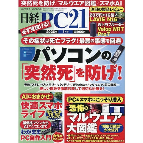 【特集】・予兆の把握と健康診断で最悪の事態を回避! パソコンの「突然死」を防げ!・PC&スマホにこっそり潜入 恐怖のマルウエア大図鑑・まるで秘書!メールの写真も電話もおまかせ AIで快適スマホライフ・低価格マシンから最先端のAIパソコンまで わがままPC自作入門…ほか