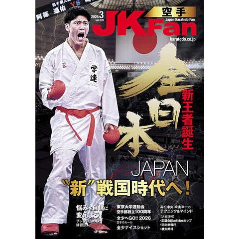 『TOP NEWS』全空連ナショナルチーム2026 注目高まる!『大会特報』天皇盃 皇后盃 第53回全日本空手道選手権大会誕生した4名の新王者 日本空手“新”戦国時代へ『特別企画』全日本体重別選手権 ナショナルチーム選考大会に東京大学運動会空手部 文武両道の100年『組手技術』チャンピオンチーム高松中央 崎山幸一のテクニック&マインドLesson 8 蹴り技のリスクに着目!『形・組手技術』関根寛和の基本・形・組手 意識づけセミナー VOL.2『連載』悩みを自信に変えよう!「糸東流修交会空手道連合 飛翔舘学園支部 その1」「空手の学校」2 時限目 掴みについて 前編― 掴みは5本の指を使わない ―