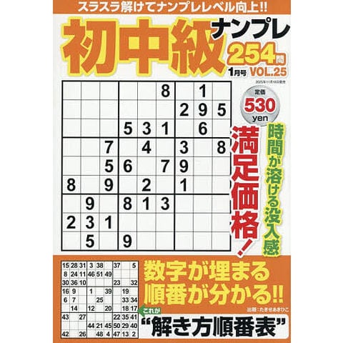 初心者でも解ける、お手軽ナンプレ。初めての人でもルールがわかる、解き方順番表が冒頭に記載されています。