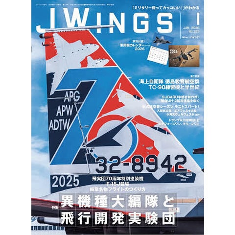 特集は「岐阜基地 異機種大編隊と飛行開発実験団」。航空自衛隊の航空機やミサイルなど、装備品に関わる試験を担う飛行開発団が所在する、岐阜基地航空祭の名物として知られる「異機種大編隊」を掘り下げます。飛実団の編隊パイロットに機種別のフライトのコツを訊き、整備士や気象隊や管制隊まで、総出で支える歴史ある人気イベントの舞台裏を紹介します。過去の異機種大編隊もまとめました。大編隊好き、集まれ!表紙は尾翼のインパクトたっぷり、飛実団創設70周年塗装機です。第二特集は「海自徳島航空基地 TC-90 訓練密着レポート」。海自パイロットの教育部隊である徳島教育航空群でのTC-90練習機による教育に密着。学生、教官、群司令へのインタビューに加え、海自で唯一、民間航空管制も担う管制隊もご紹介します。秋の航空祭シーズンラストスパート!入間、浜松、小月、立川、ソウルほかをレポート。特別付録は大好評の「軍用機カレンダー2026」。最新機種はもちろん、世界の厳選アーカイブから、懐かしいカットも交えてこだわりました。おご期待ください!