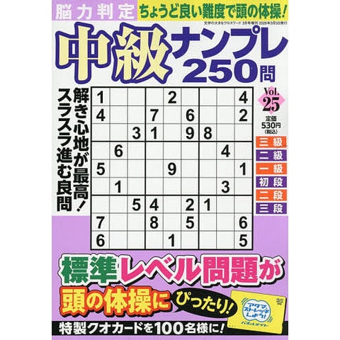 全250問ハンディサイズでもクオカードが当たる中級ナンプレ誌/総額300万円新春プレゼントフェア対象号