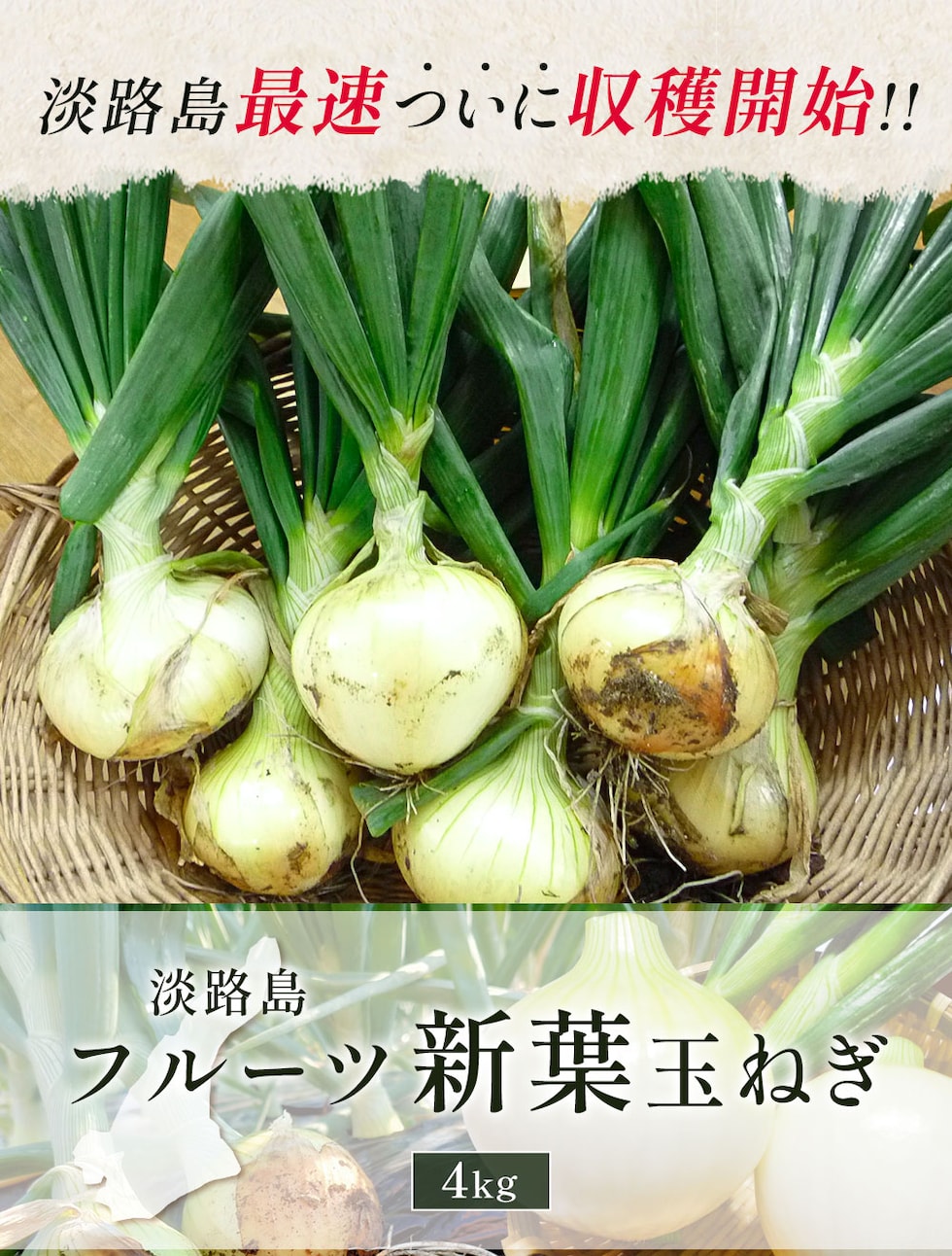 訳ありサイズ【SSサイズ中心】淡路島フルーツ新葉玉ねぎ4kg