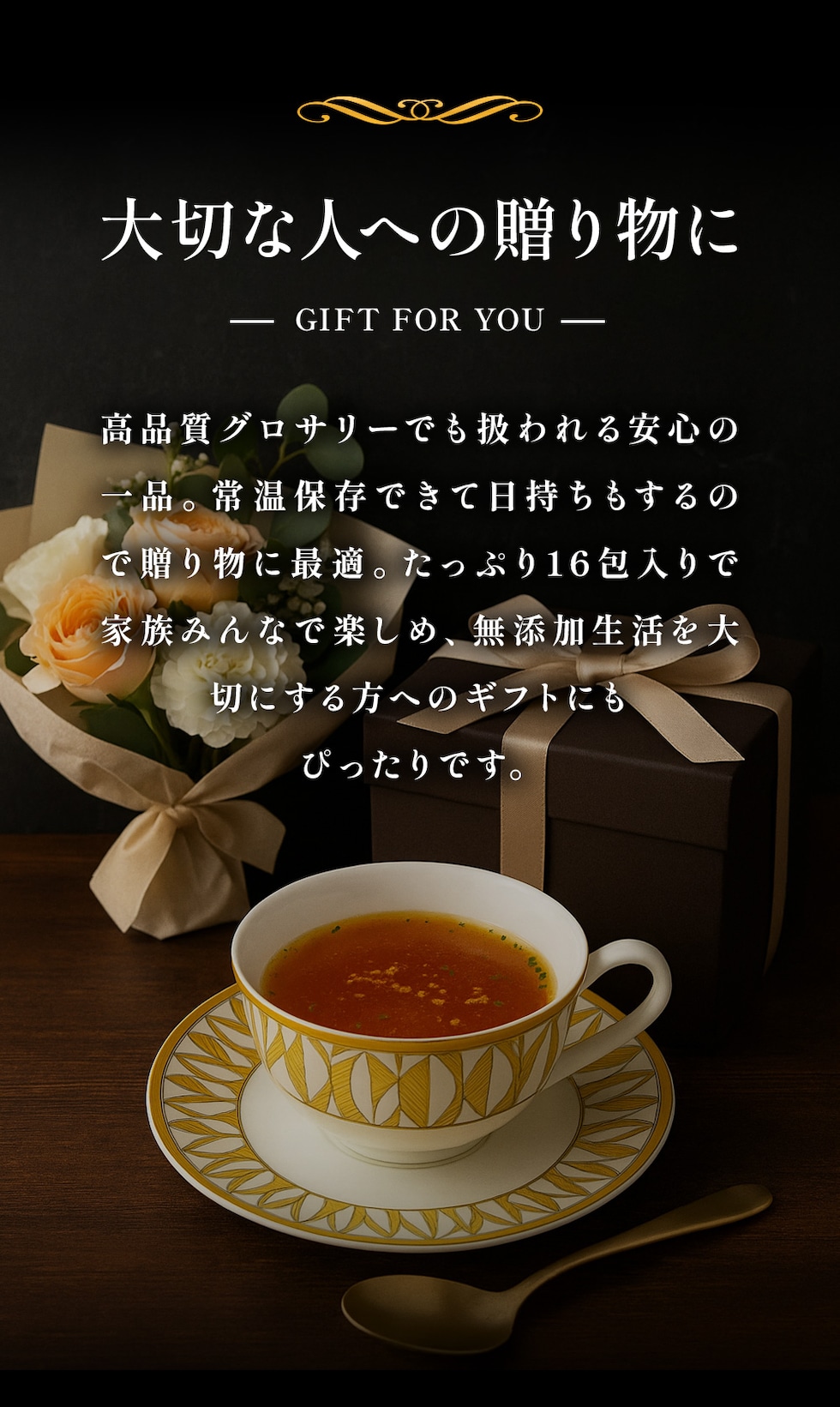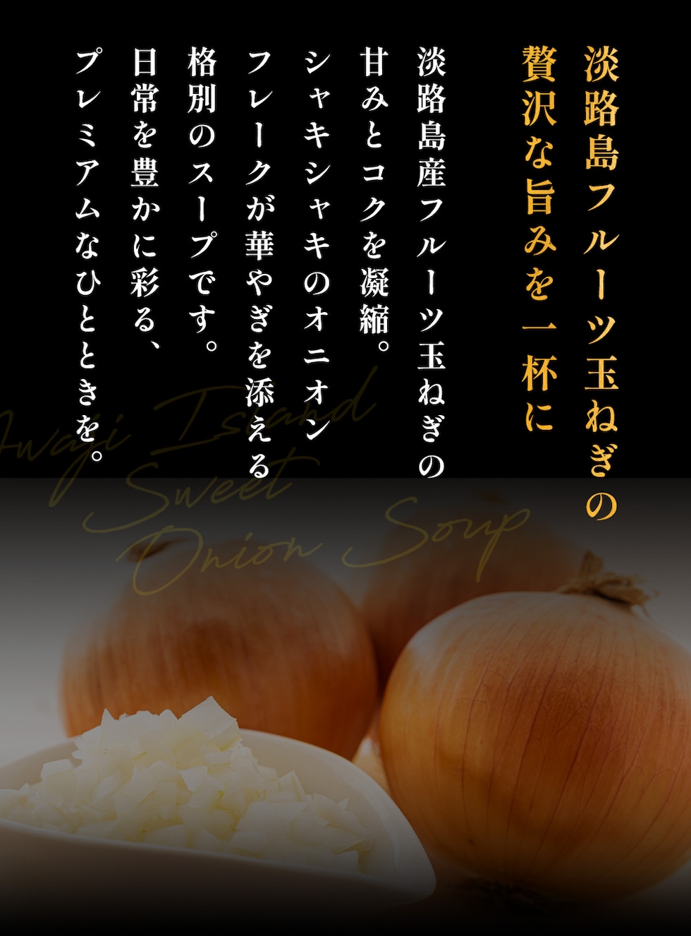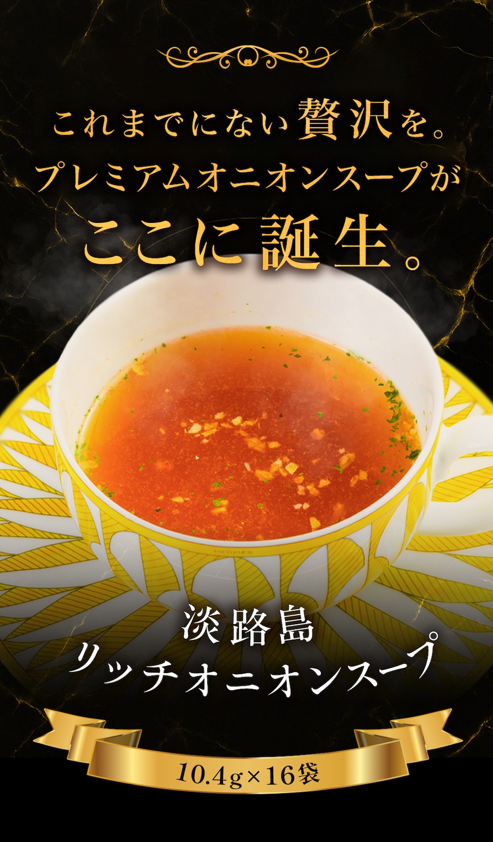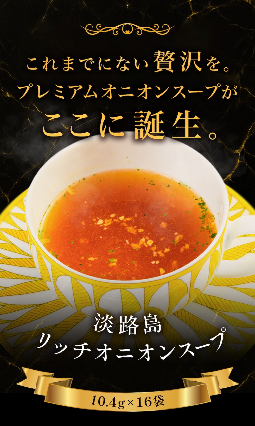 | 商品名 | オニオンフレーク入り淡路島フルーツ玉ねぎスープ(乾燥スープ)10.4g×16包 |