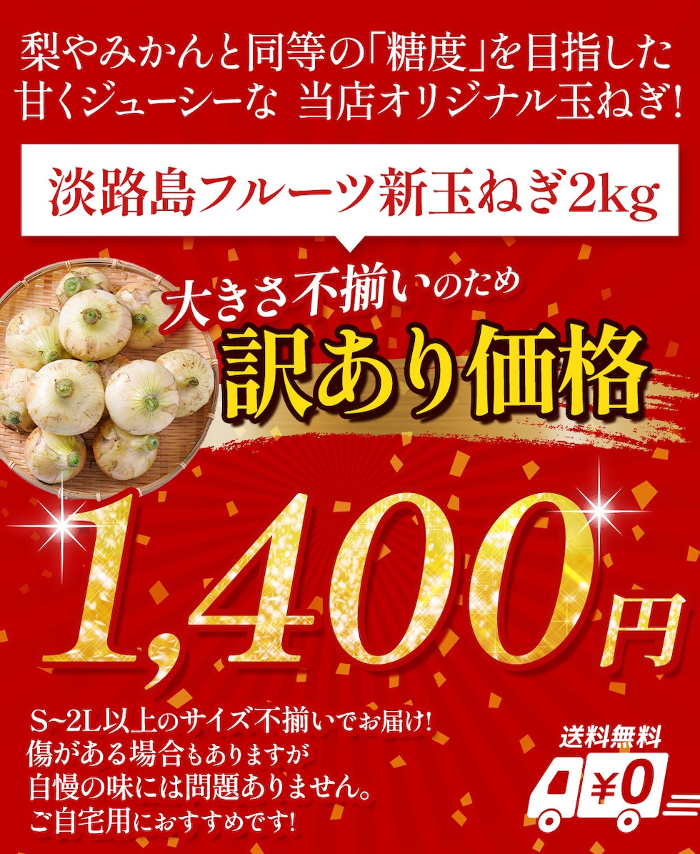 商品名:訳あり セレブな淡路島フルーツ新玉ねぎ2kg(S~LLサイズ)