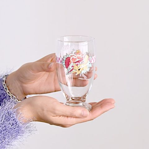 丸みを帯びた愛らしいフォルムのグラスに飲み物を注ぐだけで心が躍りますね!