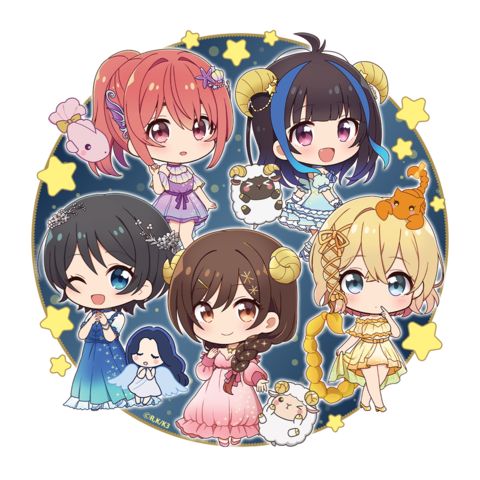 各キャラの星座をイメージした衣装の描き起こしデフォルメイラストを使用しいたしました。