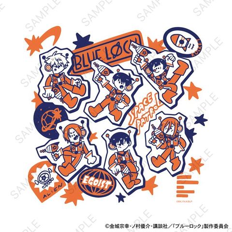 ビブスをイメージしたスペーススーツに身を包んだ潔たちや、サッカーボール星人など、ユーモア溢れるレトロフューチャーなデザイン。