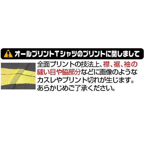 ※全面プリントの技法上、縫い目や脇下部分にカスレやプリント切れが生じます。ご了承ください。