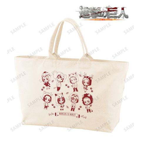 『進撃の巨人』×「東武動物公園」のコラボレーションアイテム「マーレの戦士 ちびキャラ BIGジップトートバッグ」の登場です。