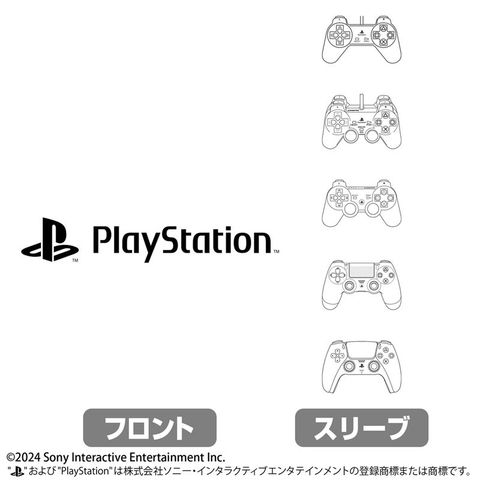 PlayStationからPlayStation5までの歴代コントローラーを袖にプリント。