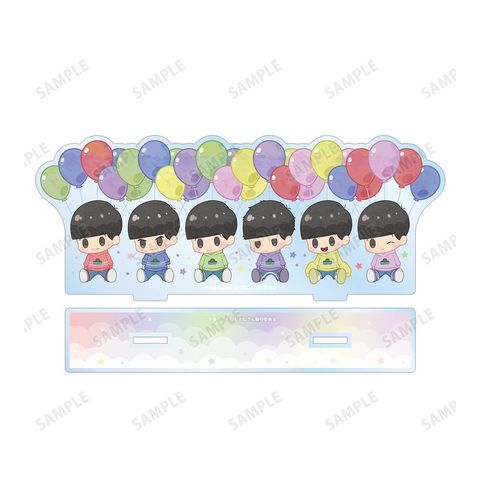 おそ松、カラ松、チョロ松、一松、十四松、トド松をお空に風船でぷかぷかと浮いたぬいぐるみをイメージして描き起こし、BIGなアクリルスタンドに仕上げました。