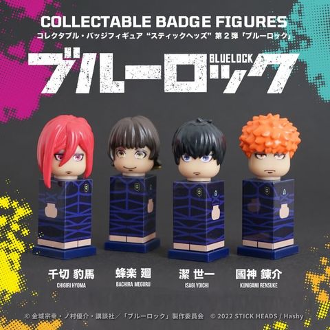 コレクタブル・ミニフィギュア「STICK HEADS / スティックヘッズ」シリーズ第2弾として、人気沸騰中サッカーアニメ「ブルーロック」が登場(vol.1/全4種)。W杯日本優勝に導く育成計画「ブルーロック(青い監獄)」プロジェクトに集められた全員ストライカーの高校生300名が頂点を目指すストーリー。ブルーロック商品化初弾として、主人公である潔 世一はじめ、蜂楽 廻、國神 錬介、千切 豹馬の4名をvol.1として商品化。
